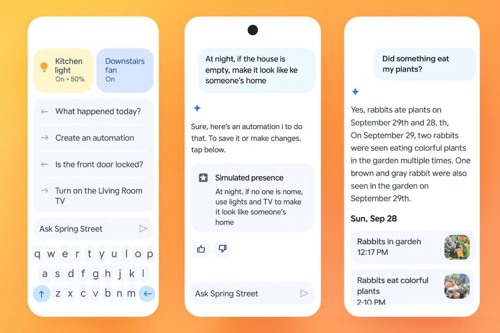 Una de las funciones más llamativas del a nueva actualización es “Preguntar a Casa”, se trata de un centro de comandos basados en lenguaje natural que permite realizar acciones avanzas. Un ejemplo, los usuarios podrán buscar momentos exactos de las grabaciones de las cámaras o crear automatizaciones personalizadas de forma sencilla.