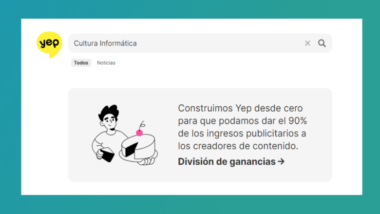 Pero aparte de lo mencionado anteriormente, el buscador Yep viene con una ventaja sobre Google, y es que sus desarrolladores están dispuestos a compartir el 90% de sus ingresos con los creadores de contenidos, ya que por si no lo saben, el gigante de Mountain View comparte el 0%.