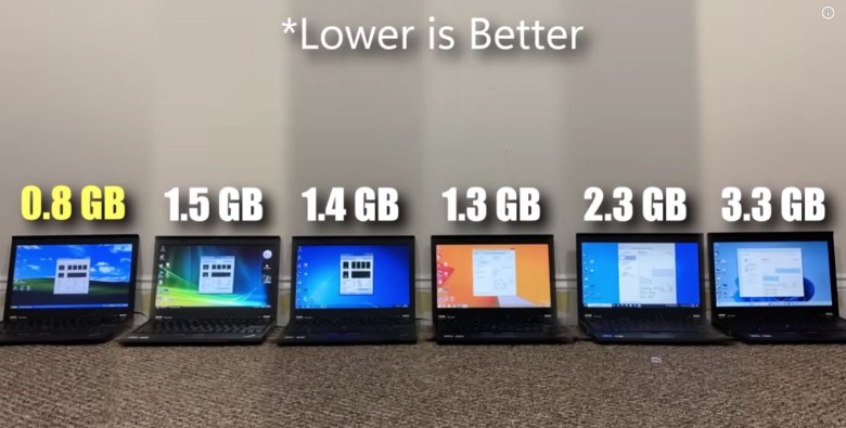 Este análisis ha incluido el legendario Windows XP hasta la versión Pro de Windows 11. Pero uno de los hallazgos más sorprendentes fue que el consumo de la memoria RAM en reposo del sistema operativo actual alcanza los 3,3 GB, mientras que Windows 10 consume menos memoria RAM con apenas 2,3 GB de base.